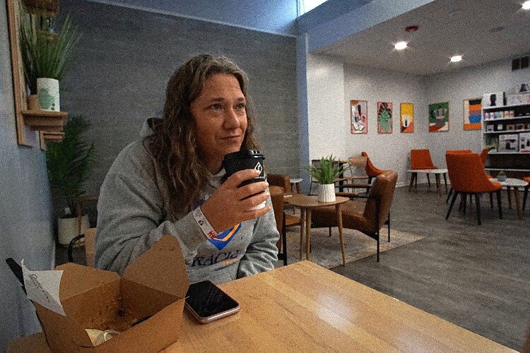 After dropping her youngest, Callen, off at daycare, Marcie stops at Creation. Her go-to coffee order is the La Pastora pour-over. This morning, she also ordered a chorizo breakfast burrito to satiate her appetite from playing basketball in a women’s league the night before.