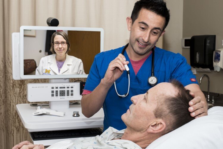 After a telestroke consult, the teleneurology team at Michigan Medicine will step in to follow up with the patient in the hospital. Dr. Kurt Sieloff is the director of teleneurology at Michigan Medicine. He says that he has also seen exponential growth in the program, from 79 consults in 2017 to 1,011 in 2019.
