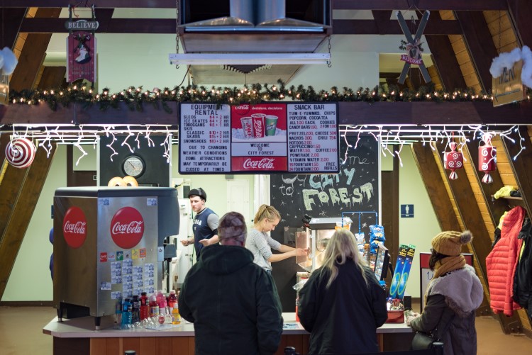 The amenities include a heated chalet with a concession area where park visitors can warm up and seek refreshment as well as rentals available for ice skates, cross country skis, and the attraction City Forest is best known for: toboggans for the area’s only toboggan run.